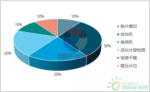 前端设备由于精度和自动化要求最高,最为核心,价格也最高。其中,搅拌机的搅拌效果直接影响电池性能,被认为在锂离子电池的整个生产工艺中对产品的品质影响大于30%;涂布机要求将搅拌后的浆料均匀得涂在金属上,厚度需精确到小于3μm;分切机需要保证切片表面不存在任何毛刺,否则对后续工艺产生很大影响。中端设备中的卷绕机、叠片机,后端设备中的检测设备技术壁垒也较高,产值空间大。
